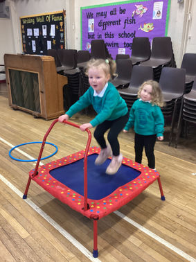 We used the big play equipment in the assembly hall during the very stormy days this month! The children continued to develop their confidence and balancing skills on the Sco-gym, tricky short steps were added for extra height to encourage some healthy risk taking and a little bit of challenge! We got a mega workout on the trampoline and had great fun on the climbing frame & slide!